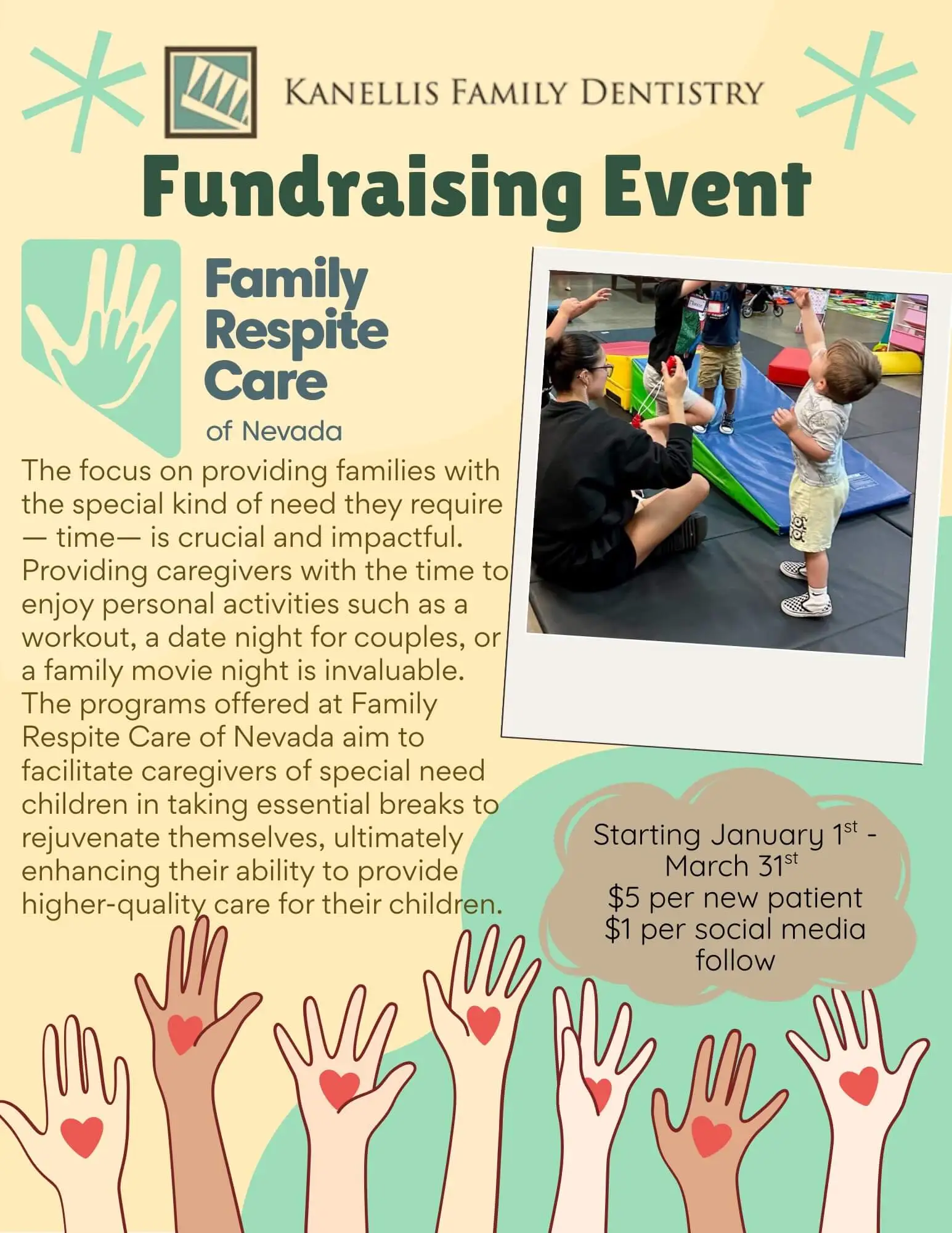Kanellis Family Dentistry sponsors the local charity organization Pinnochio’s Moms on the Run. This annual event raises money to support women battling cancer. Donations go toward helping women in many ways including childcare, transportation, groceries, etc.